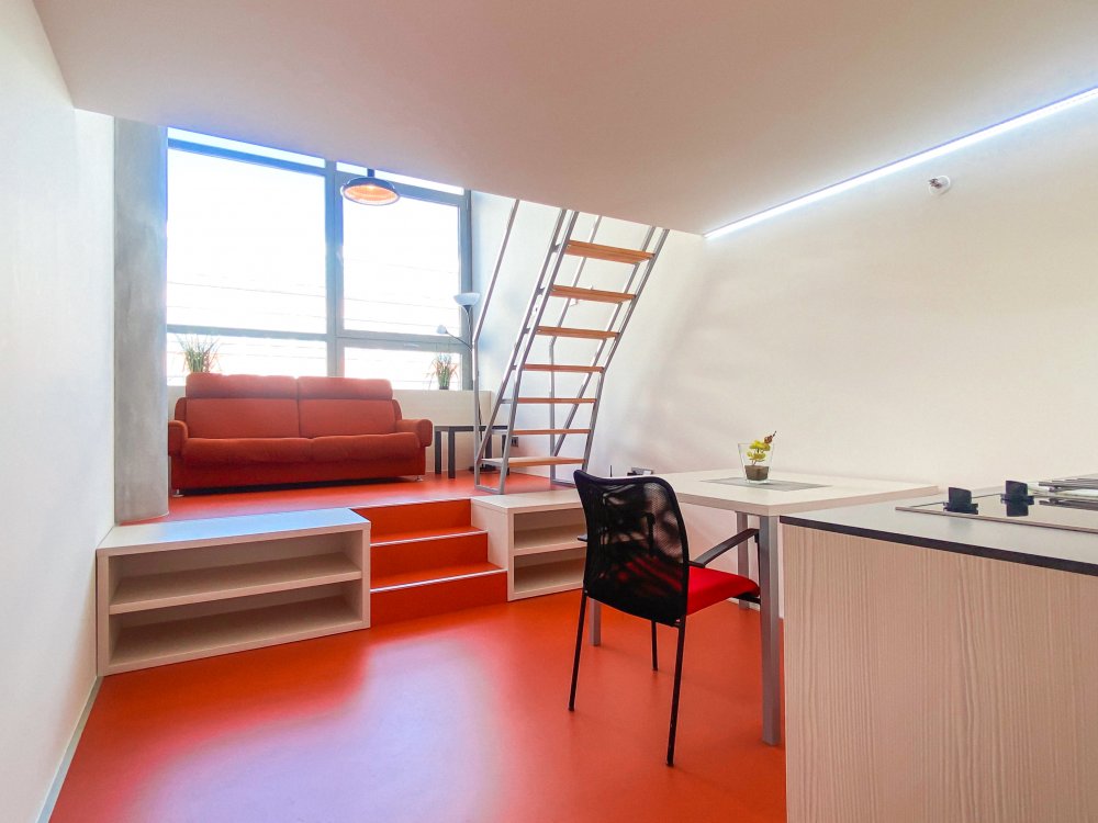 Unikátní loft Zlín nabízí právě v budově max32, přičemž každé ubytovací patro poskytuje loftové bydlení se světlou výškou 4,2 m, čímž vzniká prostor s jedinečným charakterem. Všechny lofty jsou dokonale prosvětlené, částečně zařízené a klimatizované. Interiér je otevřený a tvoří ho koupelna s toaletou, kuchyňský i jídelní kout, na který navazuje obývací část, a ložnice na vestavěném patře. Lofty jsou sice atypické, ovšem vzdušné, moderní a zároveň i neotřelé.