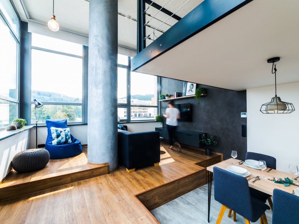 Unikátní loft Zlín nabízí právě v budově max32, přičemž každé ubytovací patro poskytuje loftové bydlení se světlou výškou 4,2 m, čímž vzniká prostor s jedinečným charakterem. Všechny lofty jsou dokonale prosvětlené, částečně zařízené a klimatizované. Interiér je otevřený a tvoří ho koupelna s toaletou, kuchyňský i jídelní kout, na který navazuje obývací část, a ložnice na vestavěném patře. Lofty jsou sice atypické, ovšem vzdušné, moderní a zároveň i neotřelé.